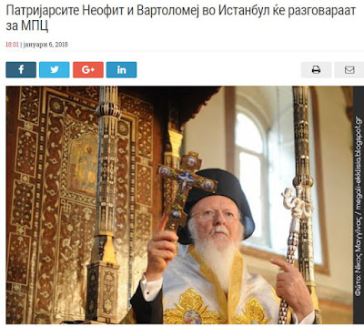 Ο Βούλγαρος Πατριάρχης Νεόφυτος και ο Οικουμενικός Πατριάρχης Βαρθολομαίος θα συναντηθούν αύριο στην Κωνσταντινούπολη, όπου ένα από τα κύρια θέματα που αναμένεται να συζητήσουν είναι η απόφαση της Βουλγαρικής Ορθόδοξης Εκκλησίας να συμμετέχει στην υπεράσπιση ενώπιον των τοπικών ορθόδοξων εκκλησιών για να καθοριστεί η κανονικότητα της Ορθόδοξης Εκκλησίας των Σκοπίων, που φέρει την ονομασία «Μακεδονική Ορθόδοξη Εκκλησία- Αρχιεπισκοπή Οχρίδας», γράφει το σλαβικό δημοσίευμα,