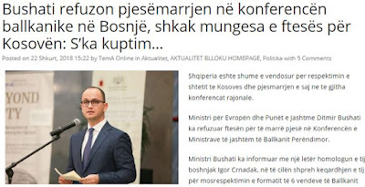 Ο υπουργός για Ευρωπαϊκές και Εξωτερικών Υποθέσεις Ντιτμίρ Μπουσάτι απέρριψε την πρόσκληση για συμμετοχή στη Διάσκεψη των Υπουργών Εξωτερικών των Δυτικών Βαλκανίων.