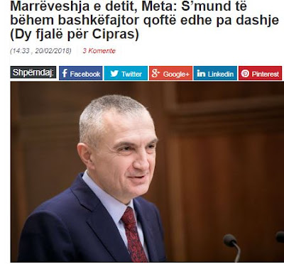 Ο πρόεδρος της Αλβανίας, Ιλίρ Μέτα, διευκρίνισε σε συνέντευξη Τύπου, ότι οι λόγοι, τους οποίος επικαλείται για να μην υπογράψει την αίτηση για παροχή εντολής προς τον υπουργό Εξωτερικών, Ντιτμίρ Μπουσάτι, βασίζεται εξ ολοκλήρου στη θέληση και πρωταρχικού καθήκοντός του να μην παραβιάζει το Σύνταγμα.