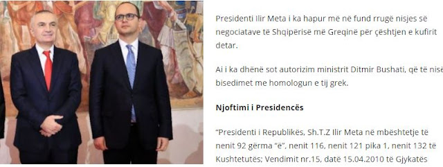 Ο πρόεδρος της Αλβανίας, Ιλίρ Μέτα, άνοιξε τελικά το δρόμο για την έναρξη των διαπραγματεύσεων με την Ελλάδα σχετικά με το θέμα των θαλάσσιων συνόρων από την Αλβανία.