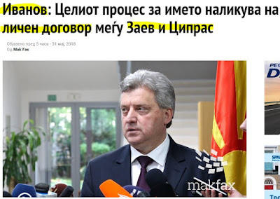 Ο πρόεδρος Γκιόργκε Ιβάνφο μετά τη σημερινή συνάντηση με τον υπουργό Εξωτερικών, Νίκολα Ντιμίτροφ, δήλωσε ότι παραμένει στη θέση του, εναντίον της αλλαγής του Συντάγματος και λύσης erga omnes στη διαφωνία του ονόματος.