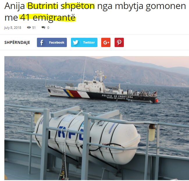 Το δημοσίευμα σημειώνει ότι το αλβανικό περιπολικό σκάφος «Butrinti», που βρίσκεται στο Αιγαίο, στο πλαίσιο του ΝΑΤΟ, διέσωσε τους μετανάστες που «ανοίχθηκαν από τα τουρκικά παράλια με πορεία προς το ελληνικό νησί της Χίου».