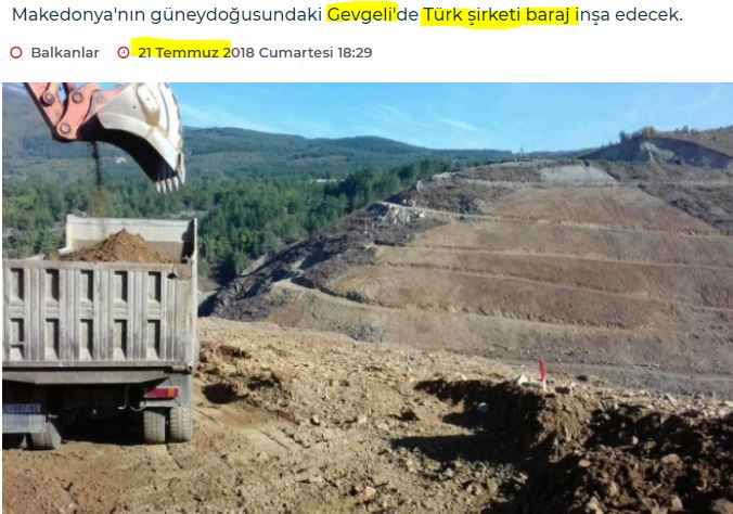 Στα νότια του κράτους των Σκοπίων, στη Γευγελή, τουρκική εταιρεία θα κατασκευάσει ένα φράγμα, σημειώνει τούρκικο δημοσίευμα.