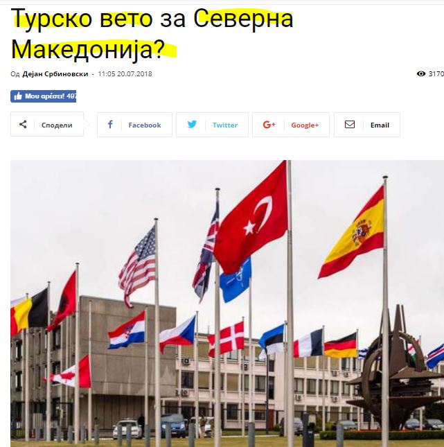 Το νέο βέτο θα εκδηλωθεί, πιθανόν, από την Τουρκία που θα προσπαθήσει να αποτρέψει την ένταξη της χώρας μας στη Συμμαχία με το όνομα «Βόρεια Μακεδονία», λόγω του γεγονότος ότι είναι ένθερμη υποστηρίκτρια του συνταγματικού ονόματός μας, 'Δημοκρατία της Μακεδονίας'. Η Τουρκία είναι μια χώρα με χρόνια αντίθεση στις ελληνικές πολιτικές και τους εκβιασμούς σχετικά με τη διαφωνία του ονόματος.