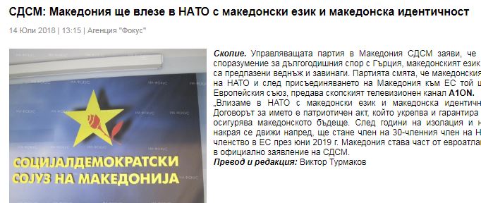 Βουλγαρικό δημοσίευμα αναφέρει ότι το κυβερνών κόμμα στη ‘Μακεδονία’, το SDSM, ανακοίνωσε ότι με τη συμφωνία που επιτεύχθηκε σχετικά με τη μακρόχρονη διαφωνία με την Ελλάδα, η μακεδονική γλώσσα και η μακεδονική ταυτότητα προστατεύονται μία για πάντα.