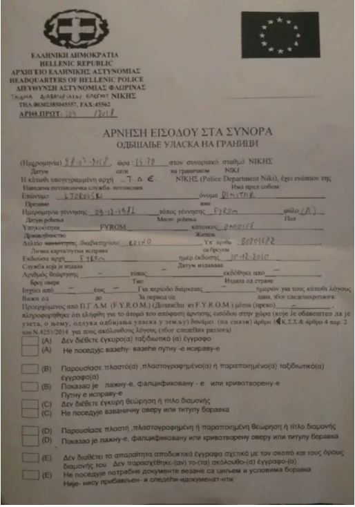 Δεκάδες πολίτες της ‘Μακεδονίας’ έχουν καταχωρηθεί στη μαύρη λίστα της Ελλάδας, αλλά σε αντίθεση με τους εγκληματίες που συλλαμβάνονται για εγκλήματα δεν έγινε γνωστό πιο είναι το λάθος για τον Λιορόφσκι.