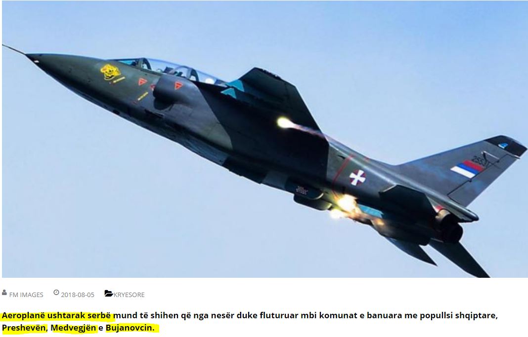 Το δημοσίευμα επισημαίνει ότι δεν είναι η πρώτη φορά που σερβικά στρατιωτικά αεροσκάφη θα πετάξουν πάνω από την Κοιλάδα του Πρέσεβο.