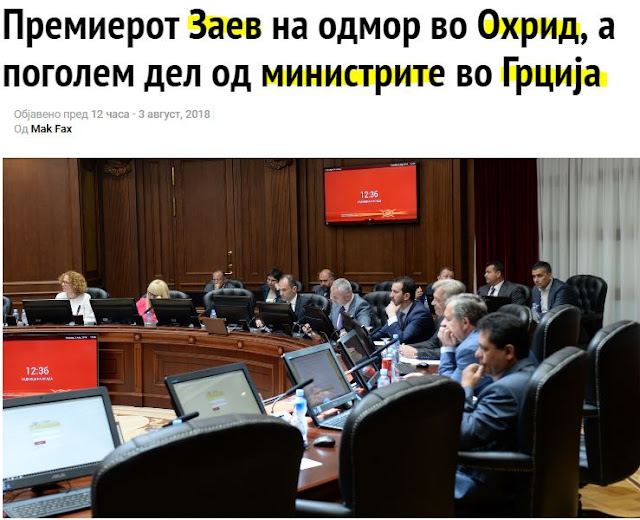 «Λόγω του έντονου ενδιαφέροντος των μέσων ενημέρωσης για τις ετήσιες άδειες των μελών της Κυβέρνησης, ο Τομέας Δημόσιων Σχέσεων, ενημέρωσε για τον τόπο διακοπών τους», γράφει το σλαβικό δημοσίευμα των Σκοπίων.