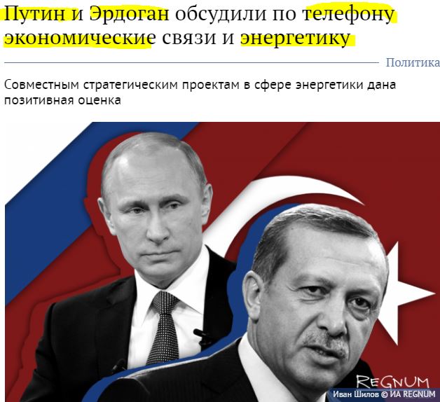 Σύμφωνα με το δημοσίευμα, τα στρατηγικά ενεργειακά έργα που υλοποιούνται από κοινού από τη Ρωσία και την Τουρκία, είναι ο αγωγός φυσικού αερίου της λεγόμενης ‘τουρκικής ροής’ και η κατασκευή του πυρηνικού σταθμού Ακούγιου.