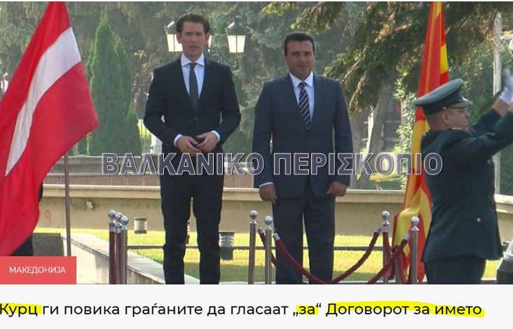 Παρά το μπέρδεμα στις σημαίες, ο Κούρτς με ψυχραιμία, έστειλε ένα σαφές μήνυμα ότι η Αυστρία και η Ευρωπαϊκή Ένωση αναμένουν θετική έκβαση του δημοψηφίσματος για το όνομα και χαιρέτισε τη Συμφωνία που επετεύχθη με την Ελλάδα.