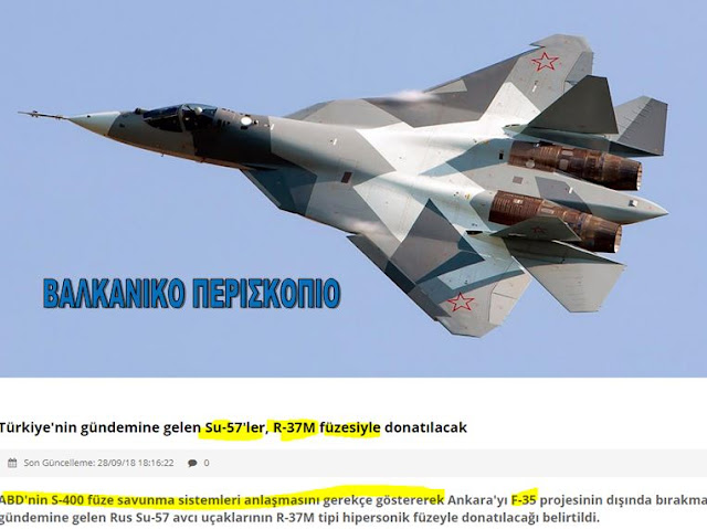 Οι Ηνωμένες Πολιτείες όταν δήλωσαν ότι εξαιτίας της συμφωνίας με τη Ρωσία για το σύστημα αντιπυραυλικής άμυνας S-400, προβαίνουν σε πάγωμα προς την Τουρκία των σύγχρονων αεροσκαφών F-35, το ενδιαφέρον της Άγκυρας στράφηκε στα ρωσικά μαχητικά αεροσκάφη Su-57 τα οποία διαθέτουν υπερηχητικούς πυραύλους R-37m.