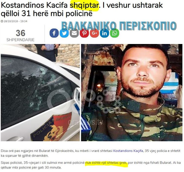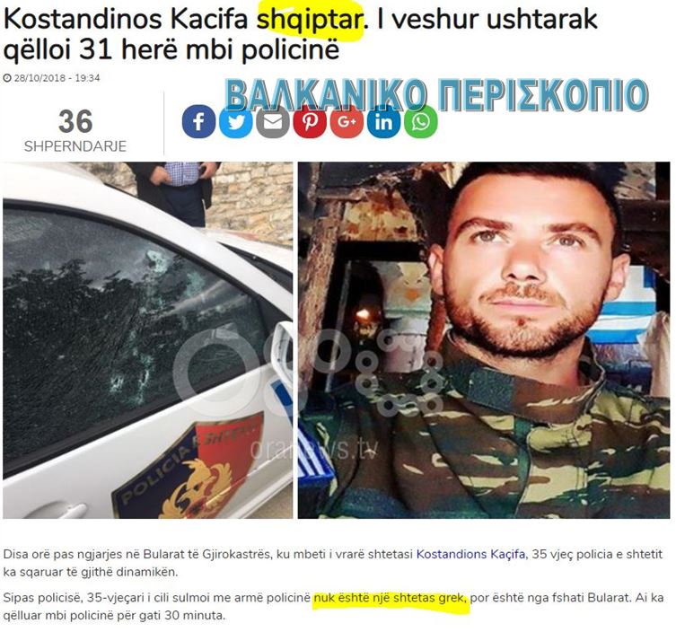 Λίγες ώρες μετά τη δράση της αστυνομίας στους Βουλιαράτες του Αργυροκάστρου, όπου σκοτώθηκε ο 35χρονος πολίτης Κωσταντίνος Κατσίφας, η αλβανική αστυνομία με ανακοίνωσή της αναφέρει ότι δεν πρόκειται για …Έλληνα.