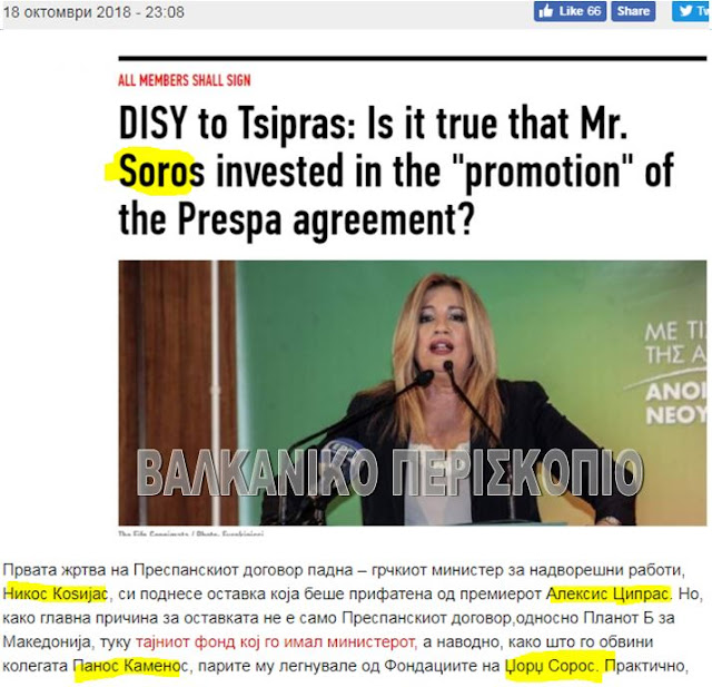 «Ο κύριος λόγος για την παραίτηση (του Ν. Κοτζιά) δεν είναι μόνο η Συμφωνία των Πρεσπών ή το Σχέδιο Β’ για τη ‘Μακεδονία’, αλλά το μυστικό ταμείο που είχε ο υπουργός και φέρεται να κατηγορήθηκε για αυτό από τον υπουργό Άμυνας, Πάνο Καμμένο, που δεν δίστασε να πει ότι τα χρήματα που διέθεσε ήταν του Τζορτζ Σόρος.
