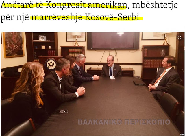 Σε συναντήσεις με τον πρόεδρο του Κοσσυφοπεδίου, το μέλος του Κογκρέσου, Έλιοτ Ένγκελ και μερικοί γερουσιαστές έχουν δεσμευθεί να παίξουν το ρόλο τους στις Ηνωμένες Πολιτείες ώστε να συμβάλλουν στην εδραίωση της ειρήνης και της σταθερότητας και της ευημερίας του λαού του Κοσσυφοπεδίου, σημειώνει η Φωνή της Αμερικής στην αλβανική της έκδοση.