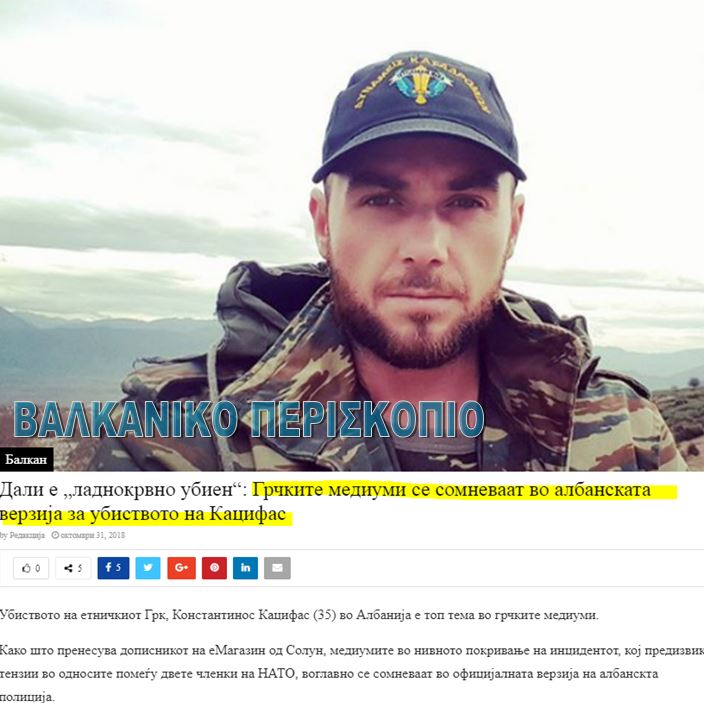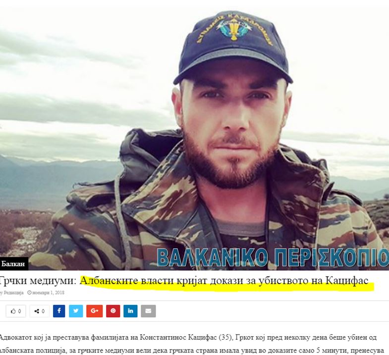 Ενημερωτικές ιστοσελίδες των Σκοπίων, αναφέρουν ότι οι αλβανικές αρχές προσπαθούν να αποκρύψουν στοιχεία για τη δολοφονία του 35χρονου Έλληνα, Κωνσταντίνου Κατσίφα.