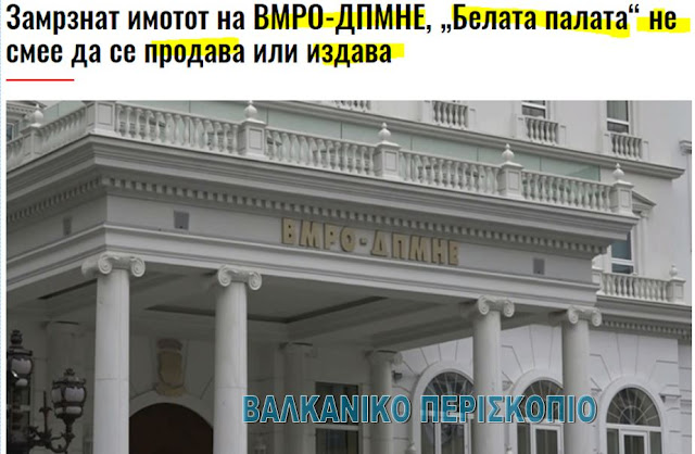 Το VMRO-DPMNE δεν μπορεί ούτε να πωλήσει ούτε να ενοικιάσει το «Λευκό Μέγαρο» που είναι η έδρα του κόμματος, σύμφωνα με απόφαση δικαστηρίου, όπως επίσης και άλλα 69 ακίνητα τα οποία έχει ως περιουσιακά στοιχεία.