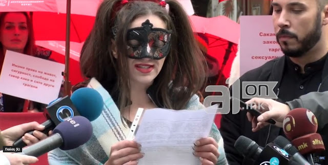 Τα μέλη του συλλόγου ‘Σταρ’ των Σκοπίων, πραγματοποίησαν πορεία διαμαρτυρίας στο κέντρο της πρωτεύουσας, ζητώντας την αποποινικοποίηση της εργασίας των ιερόδουλων.