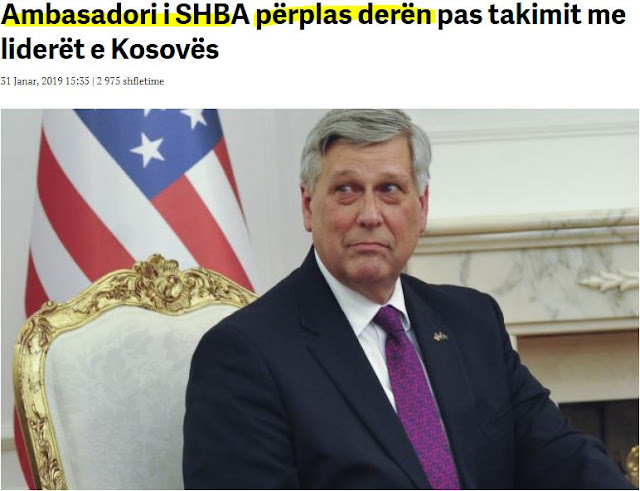 Πηγές από την ραδιοτηλεόραση Κοσόβου (RTK) αναφέρουν ότι ο Αμερικανός πρέσβης σηκώθηκε και έφυγε χτυπώντας την πόρτα εξόδου δυνατά εκνευρισμένος.