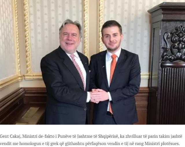 Ο Γκεντ Τσακάι, ο de facto υπουργός Εξωτερικών της Αλβανίας, έκανε την πρώτη του συνάντηση στο εξωτερικό με τον Έλληνα ομόλογό του, ο οποίος εκπροσωπεί τη χώρα του ως αναπληρωτής υπουργός.