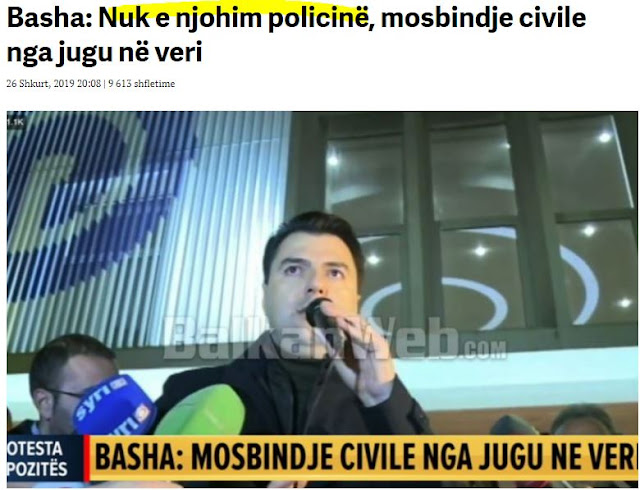 Ο Μπάσα σύμφωνα με την Balkan Web δήλωσε ότι δεν θα αναγνωρίζει την αστυνομία που ασκεί βία εναντίον των πολιτών και ότι η πολιτική ανυπακοή θα επεκταθεί από το νότο μέχρι το βορρά.