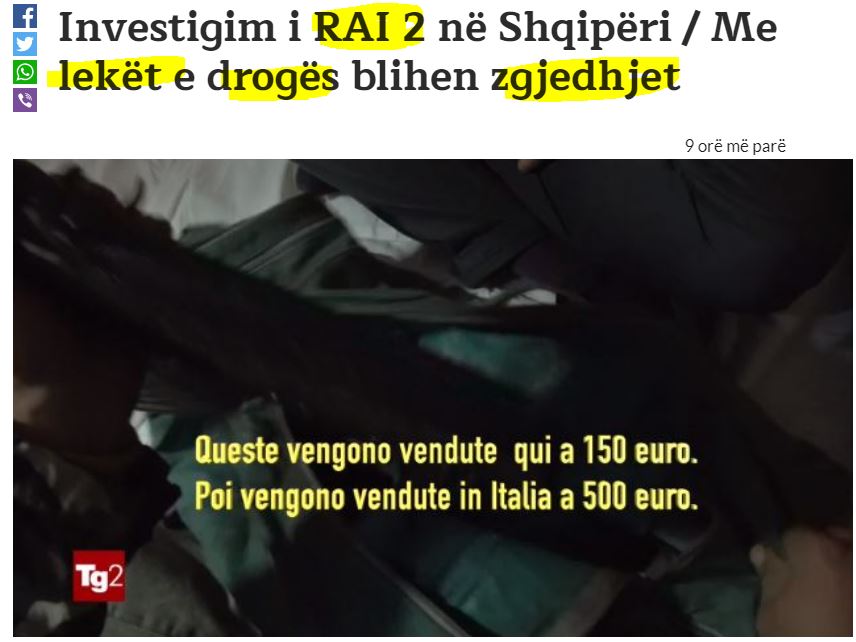 Ο Ιταλός δημοσιογράφος Λεονάρντο Ζελίνο αποκάλυψε, επίσης, μια λεπτομέρεια από έναν χονδρέμπορο αλβανικής μαριχουάνας , ο οποίος ισχυρίσθηκε ότι τα χρήματα που αποκτήθηκαν με τα ναρκωτικά πήγαν στην αγορά ψήφων στις περασμένες εκλογές. Το χρονικό μεταδόθηκε στο πρόγραμμα ειδήσεων του TG2.