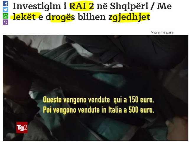 Η ιταλική κρατική τηλεόραση RAI2 έχει κάνει ένα ρεπορτάζ στην Αλβανία που αναφέρεται στο εμπόριο ναρκωτικών -από τις αλβανικές καλλιέργειες στην Ιταλία.