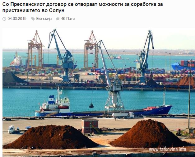 «Η Συνθήκη της Πρέσπας ανοίγει, πράγματι, ευκαιρίες για συνεργασία με συγκεκριμένα οικονομικά αποτελέσματα που καλύπτουν το όλο ζήτημα της ανάπτυξης του λιμανιού και της περιοχής», δήλωσε ο Κουβέλης, απαντώντας σε ερώτηση του ΑΠΕ-ΜΠΕ, τι προοπτικές ανοίγει η συμφωνία μεταξύ των δύο χωρών», σημειώνει χωρίς περαιτέρω σχόλια η tatkovina.info.