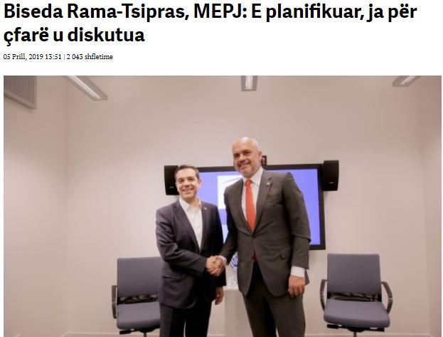 «Η τηλεφωνική συνομιλία μεταξύ του πρωθυπουργού Έντι Ράμα και του Έλληνα ομολόγου του, Αλέξη Τσίπρα, ήταν προγραμματισμένη εδώ και καιρό», ανέφεραν πηγές του Υπουργείου για την Ευρώπη και τις Εξωτερικές Υποθέσεις της Αλβανίας, σχετικά με τη συζήτηση μεταξύ των δύο πρωθυπουργών και ιδιαίτερα στην αναφορά που έγινε στα ελληνικά μέσα ενημέρωσης, αναφέρει αλβανικό δημοσίευμα.