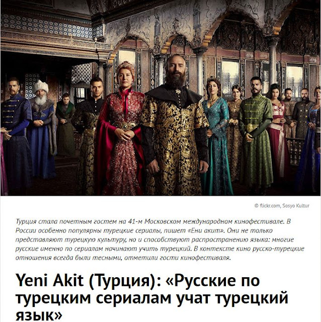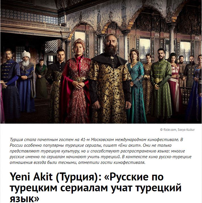 Ο καλλιτεχνικός διευθυντής του Φεστιβάλ Κινηματογράφου του Βοσπόρου, Εμράχ Κιλίτς, δήλωσε ότι «οι τουρκικές ταινίες αντιπροσωπεύουν με επιτυχία τη χώρα μας και τον πολιτισμό μας, τις παραδόσεις και τα έθιμά μας στη Ρωσία και πάνω από όλα συμβάλλουν στη διάδοση της γλώσσας μας. Πολλοί Ρώσοι μαθαίνουν τουρκικά στις τηλεοπτικές εκπομπές».