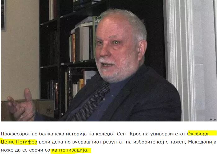 Ο καθηγητής Ιστορίας των Βαλκανίων στο Κολλέγιο ‘Σεντ Κρος’ του Πανεπιστημίου της Οξφόρδης Τζέιμς Πέτιφερ δήλωσε ότι μετά το χθεσινό αποτέλεσμα των προεδρικών εκλογών, το οποίο είναι λυπηρό, τα Σκόπια ενδέχεται να αντιμετωπίσουν την καντονοποίηση.