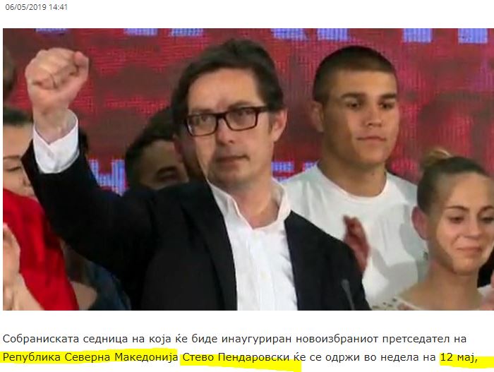 Η κοινοβουλευτική συνεδρίαση, στην οποία θα γίνει τελετή για την ανάληψη των καθηκόντων του νεοεκλεγέντα προέδρου της Δημοκρατίας της Βόρειας Μακεδονίας, Στέβο Πενταρόφσκι, θα πραγματοποιηθεί την Κυριακή 12 Μαΐου, όπως ανακοινώθηκε από το Κοινοβούλιο, αναφέρει το τηλεοπτικό κανάλι των Σκοπίων tv21.