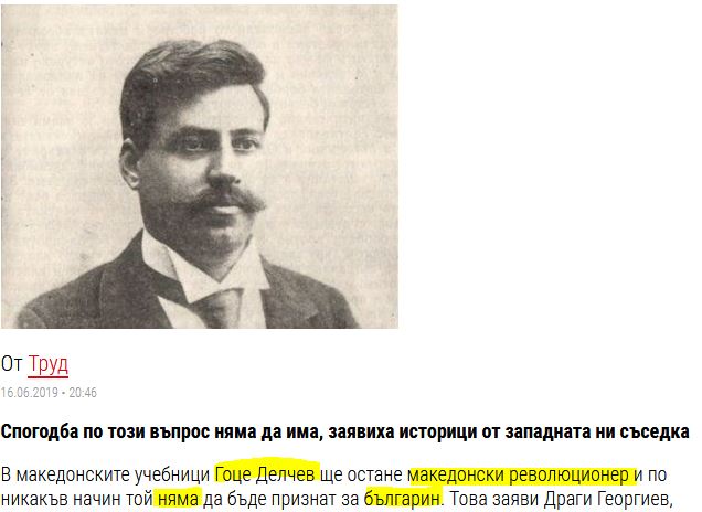 «Εάν η βουλγαρική πλευρά επιμένει να γραφεί ότι ο Γκότσε Ντέλτσεφ ήταν Βούλγαρος επαναστάτης, η συμφωνία για το θέμα αυτό είναι αμφίβολη», δήλωσε ο Γκεοργκίεφ στα μέσα ενημέρωσης των Σκοπίων – όπως σημειώνεται.