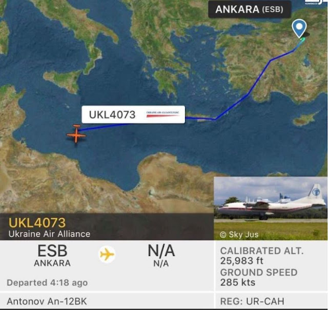 Το δημοσίευμα σημειώνει ότι αεροσκάφος της ουκρανικής εταιρείας τύπου ‘ Antonov An 12BK’ με αριθμό πτήσης ‘UKL4073 ‘, στις 3 Ιουνίου απογειώθηκε από την Άγκυρα με προορισμό το Μοναστίρ της Τυνησίας, αλλά προσγειώθηκε εκτάκτως στο αεροδρόμιο της Λιβύης Μισράτα πριν καταλήξει στην Τυνησία.