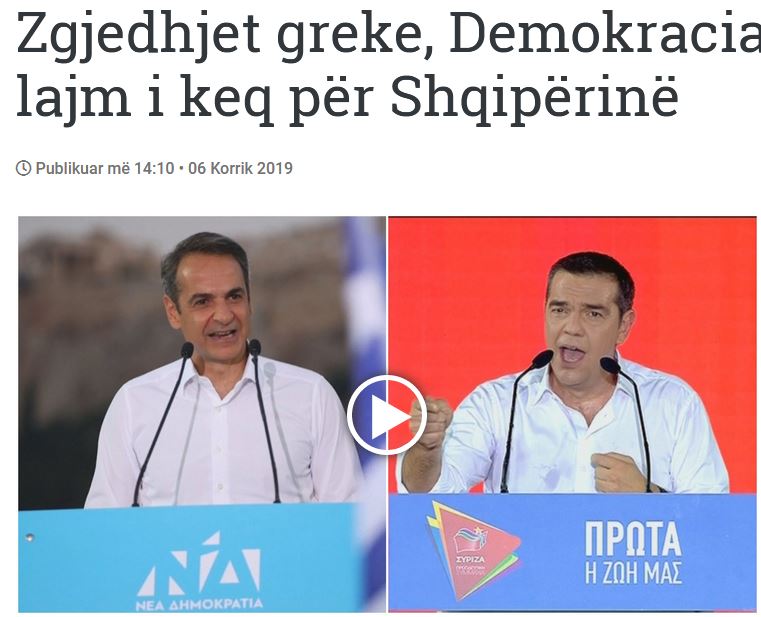 Οι πολίτες θα πάνε στις κάλπες αύριο Κυριακή εν μέσω παραπόνων εναντίον της κυβέρνησης του πρωθυπουργού Αλέξη Τσίπρα για τη συμφωνία για το όνομα της Βόρειας Μακεδονίας και την ελπίδα για μια αλλαγή. Αυτή η εξέλιξη που ενδέχεται να γίνει πραγματικότητα δεν είναι ένα καλό νέο για τη χώρα μας, γράφει το αλβανικό δημοσίευμα.
