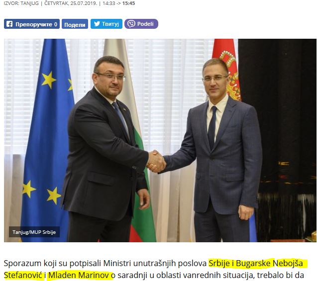 Η συμφωνία υπεγράφη από τους υπουργούς Εσωτερικών της Σερβίας και της Βουλγαρίας, Νεμπόισα Στεφάνοβιτς και Μλάντεν Μαρίνοφ.