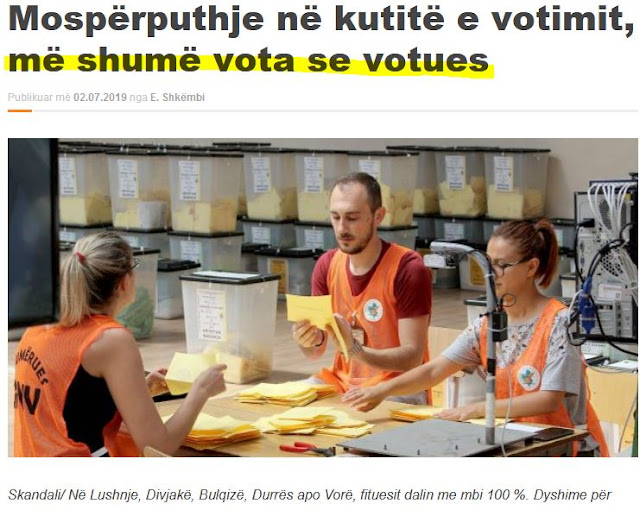 Τα παραδείγματα, δυστυχώς, πολλά, «και οι νικητές των δήμων έλαβαν πάνω από το …100% των ψηφισάντων. Οι νοθείες φαίνεται να έγιναν την τελευταία ώρα της εκλογικής διαδικασίας», σημειώνουν τα αλβανικά δημοσιεύματα.