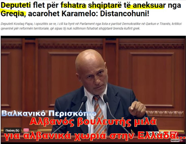Ο νέος βουλευτής της αντιπολίτευσης, Κοστάκ Πάπα, που εισήλθε στο Κοινοβούλιο από τον κατάλογο του Δημοκρατικού Κόμματος στην περιοχή των Τιράνων, επέκρινε την κυβέρνηση για την εδαφική μεταρρύθμιση και σύμφωνα με αυτόν δεν βοηθά τα αλβανικά χωριά που βρίσκονται πέρα από τα ελληνικά σύνορα.