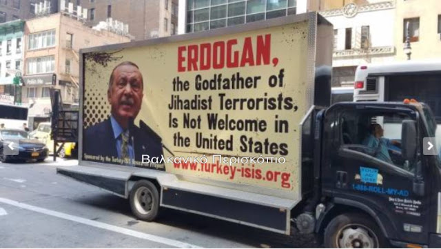 Γιγαντιαία αφίσα επάνω σε φορτηγό που περιέτρεχε τους δρόμους της Νέας Υόρκης έγραψε ότι « Ο Ερντογάν, ο νονός των Τζιχαντιστών Τρομοκρατών δεν είναι ευπρόσδεκτος στις Ηνωμένες Πολιτείες».