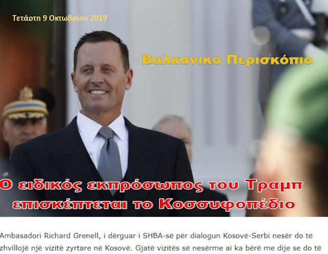 «Στις 13:00, ο πρόεδρος της Δημοκρατίας του Κοσσυφοπεδίου, Χασίμ Θάτσι, θα υποδεχθεί τον Ειδικό Εκπρόσωπο του προέδρου των Ηνωμένων Πολιτειών Ντόναλντ Τραμπ για το διάλογο Κοσσυφοπεδίου- Σερβίας, πρέσβης Ρίτσαρντ Γκρενέλ», αναφέρει η δήλωση της του γραφείου Τύπου του προέδρου Θάτσι.