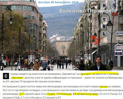 Η δημοσκόπηση διεξήχθη από το Κέντρο Ευρωπαϊκής Στρατηγικής «Eurothink», σύμφωνα με δημοσίευμα του «360stepeni».