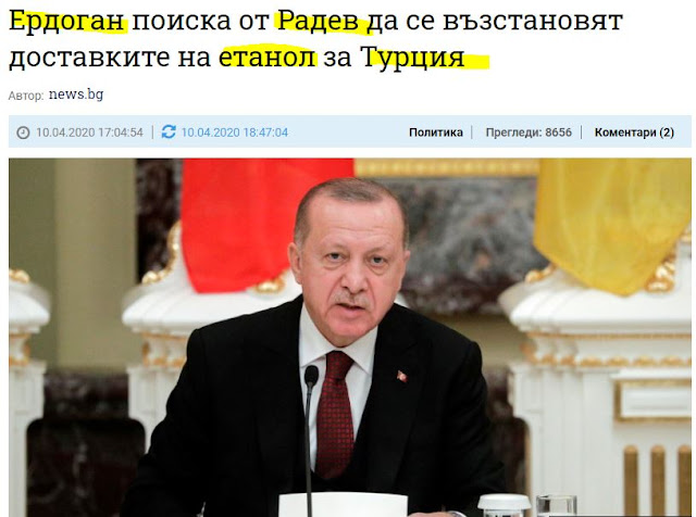 Ο Τούρκος πρόεδρος ζήτησε την ευελιξία και την έγκριση των εξαγωγών αιθανόλης από τη Βουλγαρία στην Τουρκία που απαιτούνται για την παραγωγή απολυμαντικών.