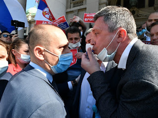 Σήμερα πριν από το μεσημέρι, ο αρχηγός του αντιπολιτευόμενου εθνικιστικού κινήματος Ντέβερι, ο Μπόσκο Ομπράντοβιτς, και οι βουλευτές και οι υποστηρικτές του μπλόκαραν τις σκάλες στην είσοδο του σερβικού κοινοβουλίου.