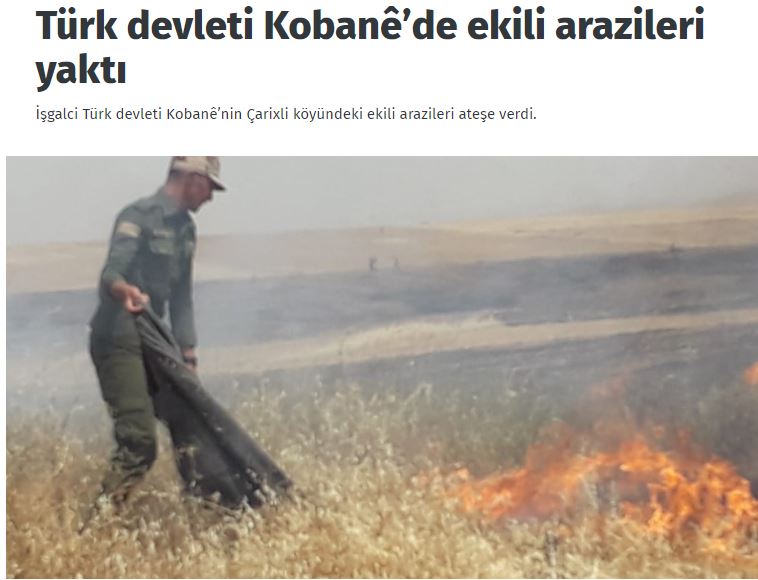 Σύμφωνα, εξάλλου, με το κουρδικό AnfNews, γεωργικές εκτάσεις που ανήκουν σε χωρικούς σε σχεδόν 40 περιοχές (το δημοσίευμα αναφέρει τις συγκεκριμένες περιοχές) κάηκαν από τους Τούρκους, επιφέροντας σοβαρό πλήγμα σε δεκάδες χιλιάδες εντόπιους που ζουν από την καλλιέργεια των αγρών.