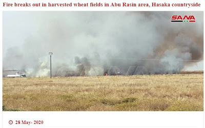 Το συριακό πρακτορείο ειδήσεων- Sana, αναφέρει με τη σειρά του, ότι η τουρκική κατοχή έχει κάψει αγροτικές εκτάσεις με σιτηρά νοτιοδυτικά της πόλης Αμπού Ρασίν στην επαρχία Χασάκα.