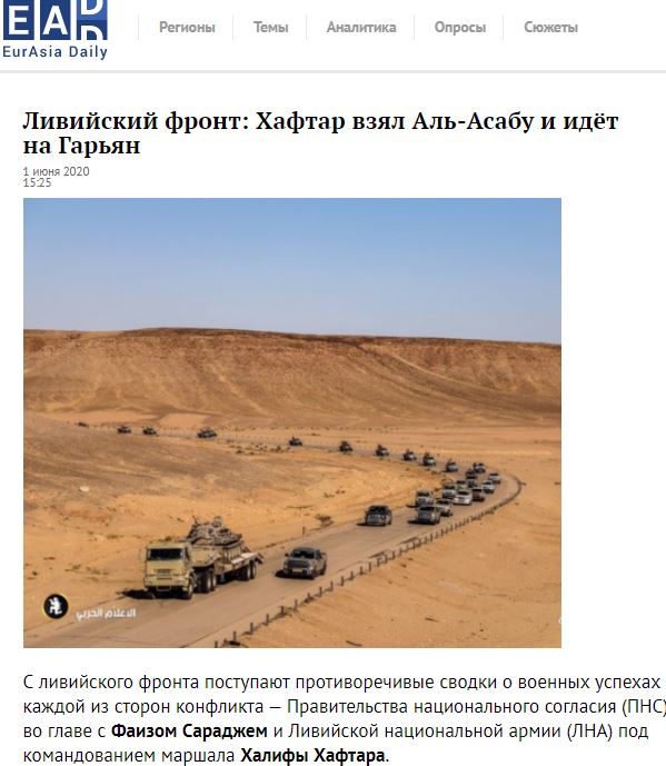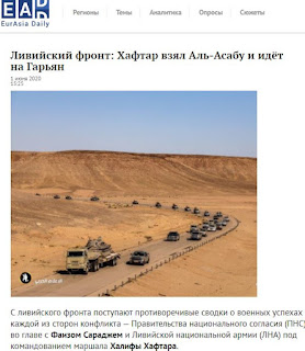 Αντικρουόμενες είναι οι ειδήσεις από το Λιβυκό μέτωπο σχετικά με τις στρατιωτικές επιτυχίες καθενός από τα μέρη της σύγκρουσης - της Κυβέρνησης της Εθνικής Συμφωνίας (PNS) με επικεφαλής τον Φαγιέζ αλ Σάρατζ και τον Εθνικό Στρατό της Λιβύης (LNA) υπό την ηγεσία του στρατάρχη Χαλίφα Χαφτάρ.