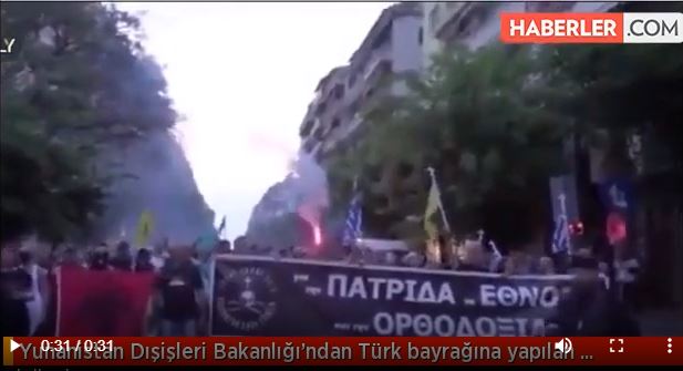 Αργότερα, με πλακάτ που έγραφαν «Πατρίδα, Έθνος, Ορθοδοξία», άρχισαν πορεία προς το τουρκικό προξενείο Θεσσαλονίκης φωνάζοντας συνθήματα κατά της χώρας μας (γράφει το τούρκικο δημοσίευμα).