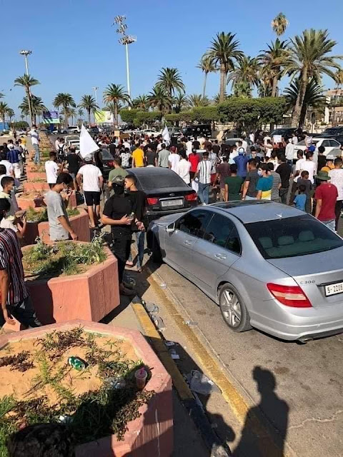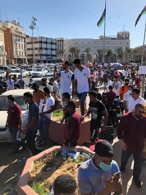 Πηγές της Al-Arabiya ανέφεραν τις συνεχιζόμενες διαδηλώσεις, με καύση ελαστικών και κλείσιμο δρόμων στην πρωτεύουσα, Τρίπολη, την Κυριακή το βράδυ, ενώ οι πολιτοφυλακές πραγματοποίησαν εκτεταμένη εκστρατεία συλλήψεων στις γειτονιές της πρωτεύουσας εναντίον των διαδηλωτών που απαιτούσαν την αποχώρηση του αλ Σάρατζ και της κυβέρνησης της Εθνικής Συμφωνίας.