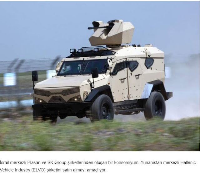 Η κοινοπραξία εταιρειών «SK Group ve Plasan» με έδρα το Ισραήλ, στοχεύει στην εξαγορά της Ελληνικής Βιομηχανίας Οχημάτων (ΕΛΒΟ) που έχει έδρα την Ελλάδα, γράφει τούρκικο δημοσίευμα που ασχολείται με αμυντικά θέματα.