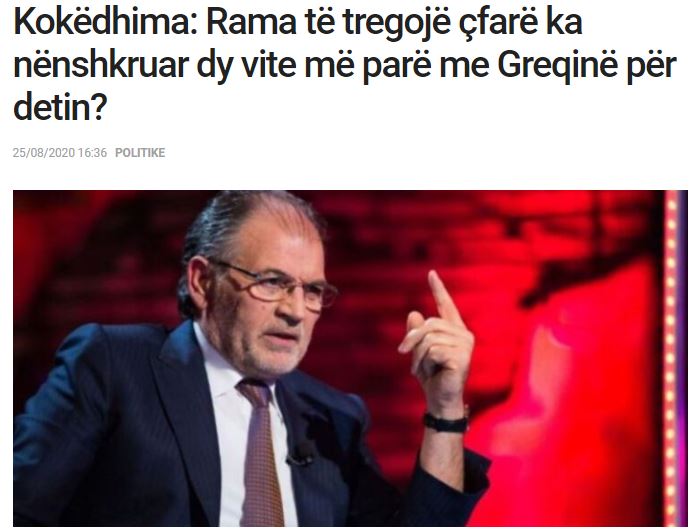 Σύμφωνα, επίσης, με την ‘Koha Jone’, ο επικεφαλής του αλβανικού κόμματος Κότσο Κοκεδήμα αναφερόμενος στις δηλώσεις του Δένδια, ζήτησε από τον πρωθυπουργό της Αλβανίας να δημοσιοποιήσει τη συμφωνία που έγινε πριν από δύο χρόνια με τον Μπουσάτι- Κοτζιά.