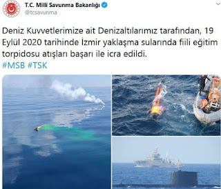 Το τουρκικό υπουργείο Εθνικής Άμυνας ανακοίνωσε ότι τα υποβρύχια που ανήκουν στη Διοίκηση των Ναυτικών Δυνάμεων πραγματοποίησαν με επιτυχία άσκηση με πραγματικά πυρά- εκτόξευση τορπιλών- στα ύδατα της Σμύρνης, όπως αναφέρει η τουρκική Sözcü.